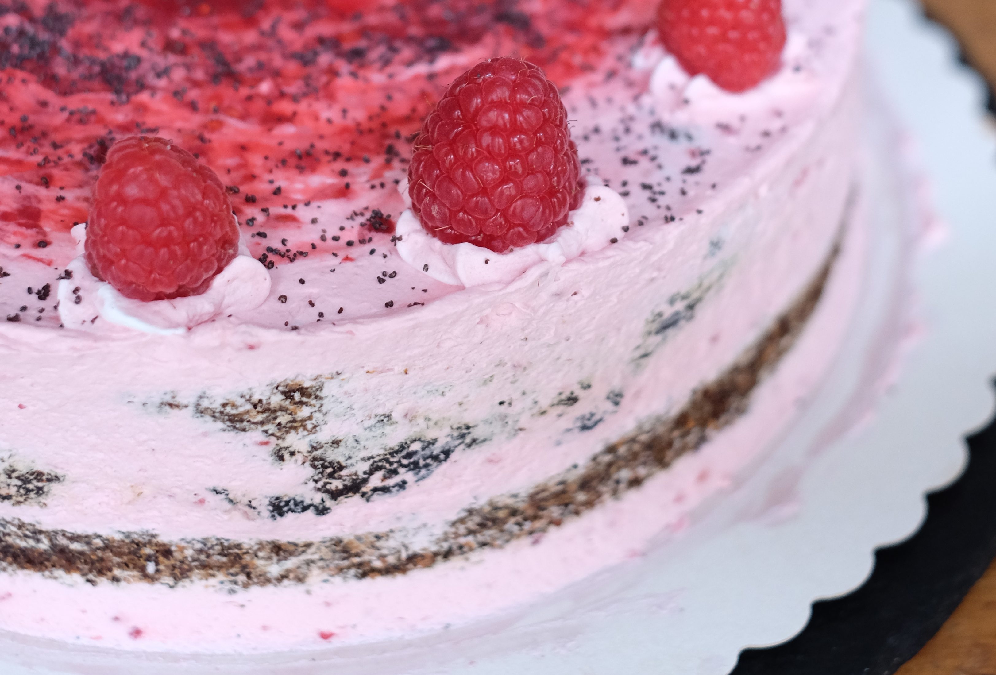 Mohn Himbeer weiße Schoko Torte