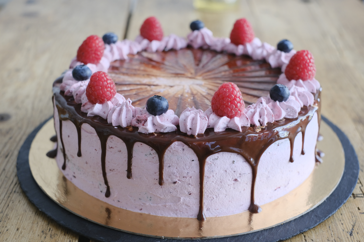 Saftiger Schokoladenteig wird durch eingebackene Waldbeeren ergänzt und trifft auf eine fruchtig-säuerliche Waldbeercreme.